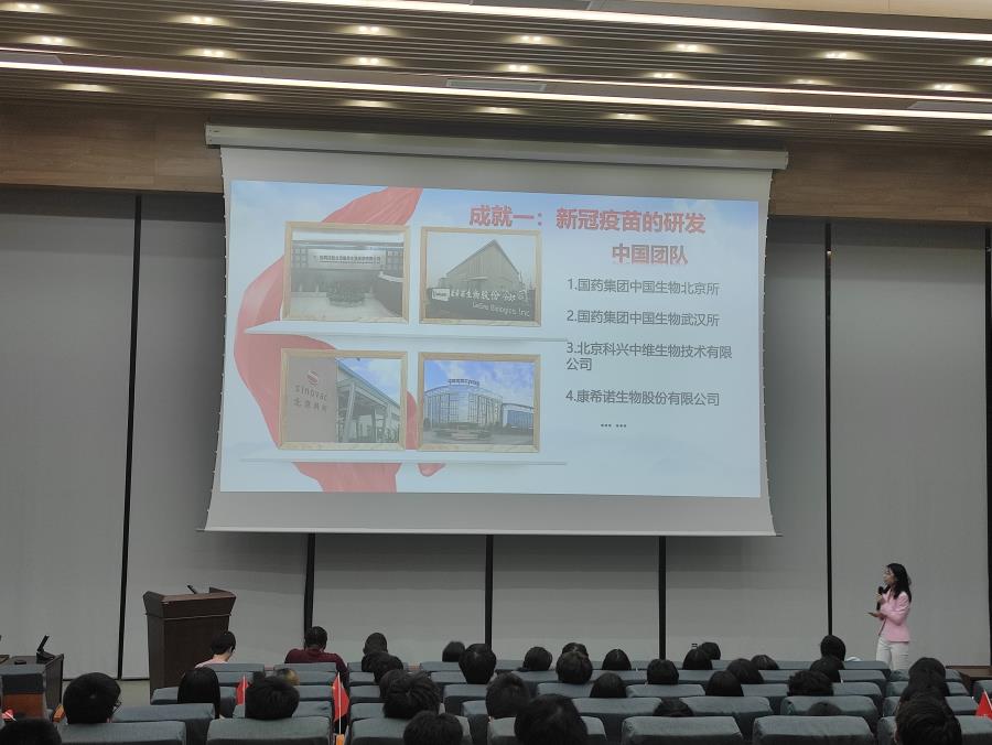 电商2001叶艺娜同学为大家宣讲“创新引领发展,科技自立自强”。她从古代的“四大发明”讲到今天新的“四大发明”,进步阐释了科技创新道路中国人一直没有停下来,“关键核心技术”必须掌握在中国人手中,才不被“卡脖子”。要建设科技强国,必须实现科技自立自强。