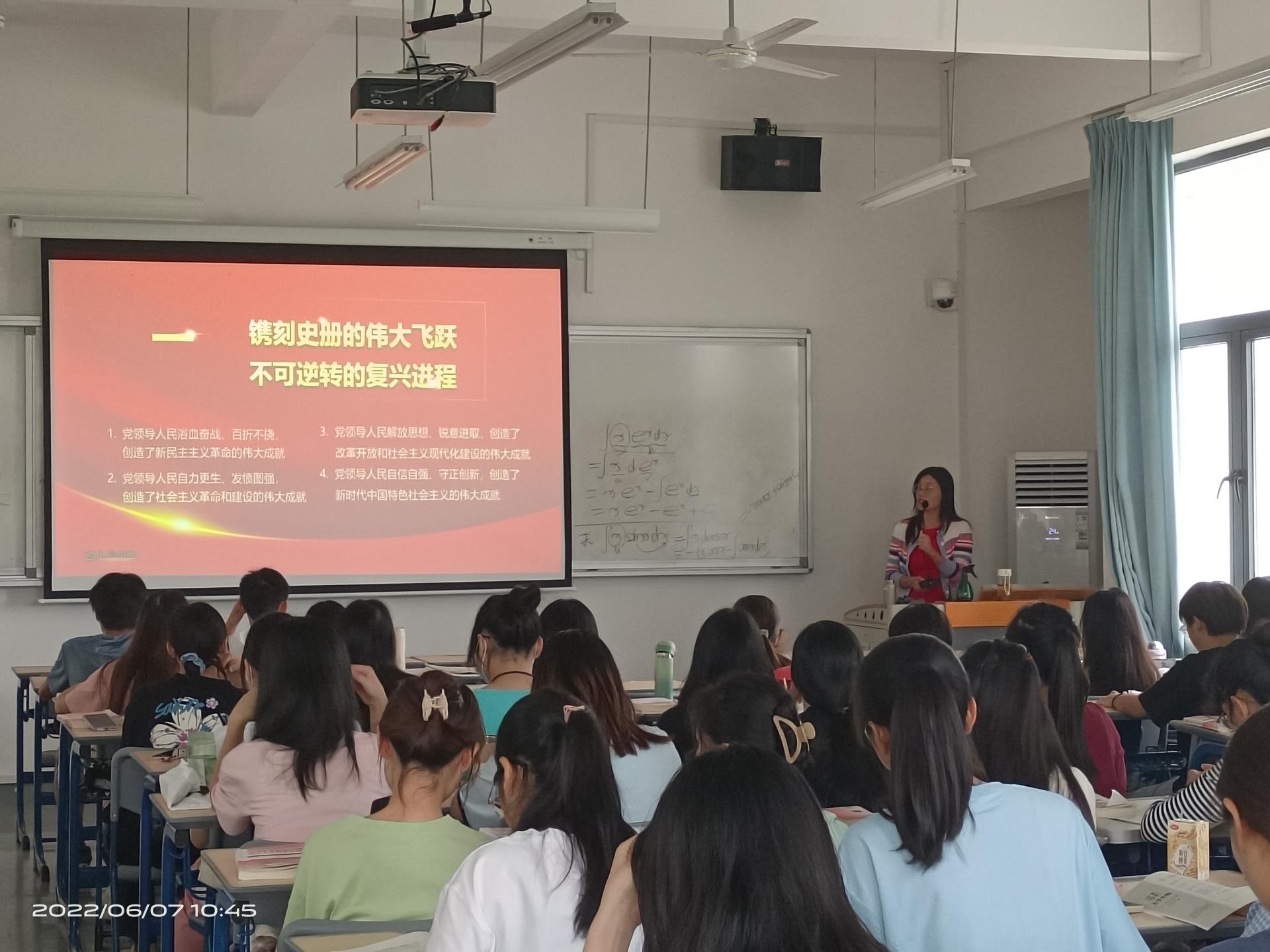 6月7日,马克思主义学院张彩云老师为护理2103-2104班作党史学习教育宣讲。张彩云老师旁征博引,通过讲革命故事、谈个人感受,深入浅出讲述了中国共产党从磨难中走来的百年奋斗历程,分析了党的成功之根本,让全体学生清晰认识到中国共产党为国家和人民作出的伟大贡献,感悟到共产党人的初心与信念。