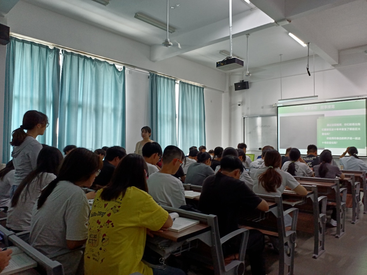 课堂上,李瑜琦老师围绕“担当复兴大任 成就时代新人”这一核心主题展开教学,从“中国特色社会主义新时代的历史方位”“时代新人的使命要求”“思想道德与法治素养的提升路径”三个维度,系统阐释了课程的核心价值与学习意义。授课过程中,李老师以饱满的热情、生动的案例将抽象理论具象化,通过课堂提问、案例分析等方式引导学生思考,课堂秩序井然,师生互动成效良好。陈金毓副院长全程专注聆听,细致记录教学环节与学生状态。