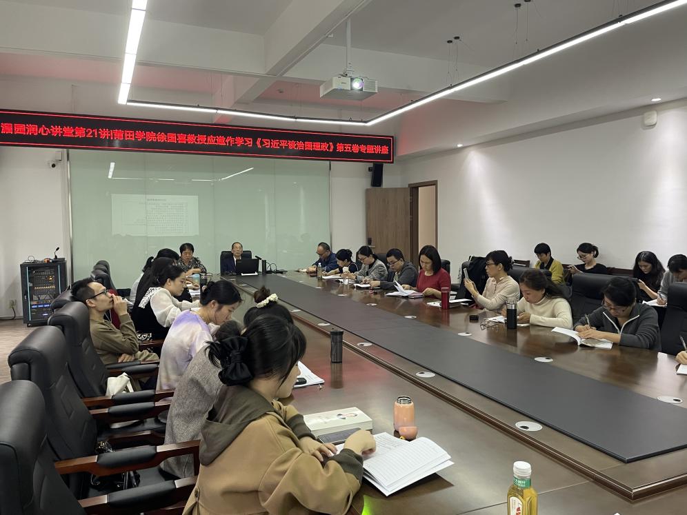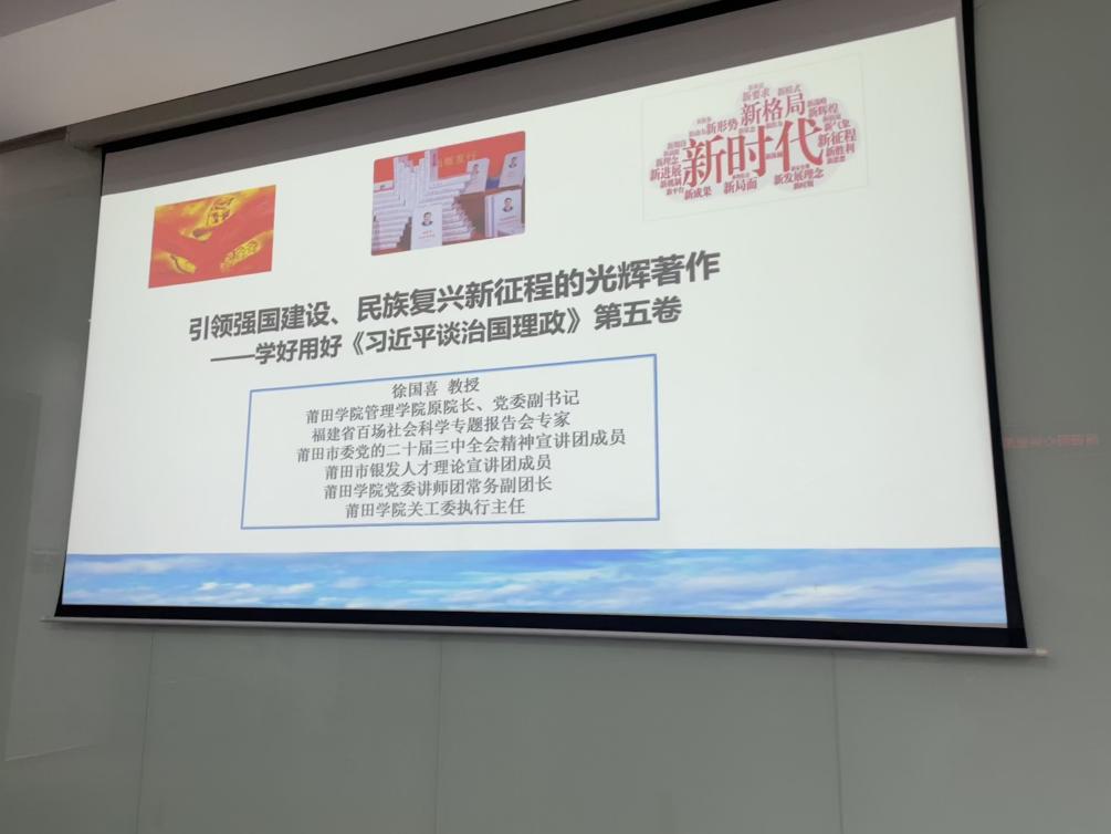 11月4日下午,马克思主义学院党支部在行政楼中303室开展了“深入学习《习近平谈治国理政》第五卷,汲取奋进力量”主题党日活动暨专题党课。此次活动邀请莆田学院徐国喜教授为马院党员教师授课,旨在深入学习贯彻习近平新时代中国特色社会主义思想,推动广大党员教师更加深刻领悟“两个确立”的决定性意义。