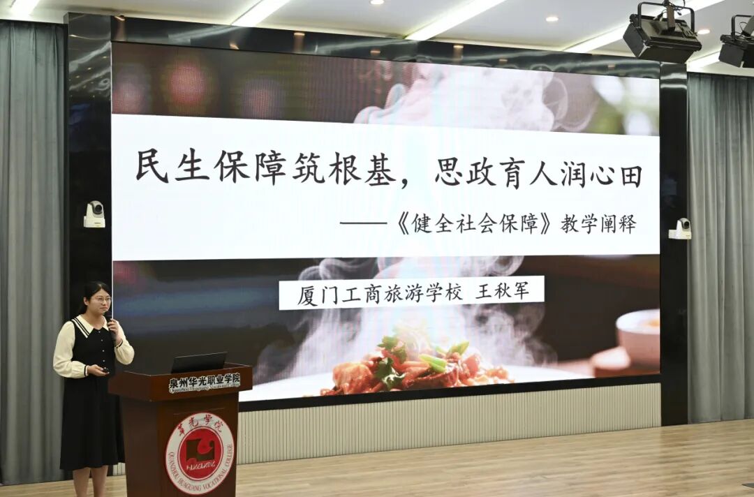 教学展示环节,来自省内8所职业院校的思政课骨干教师围绕不同教学主题进行了精彩的教学展示。教育部高校思想政治理论课教学指导委员会委员、福建农林大学刘新玲教授,以及福建省高校思想政治理论课教学指导委员会委员、福州大学马克思主义学院院长詹志华教授分别作专业点评,为持续提升高职高专院校思政课教学质量提供了新思路与新方法。