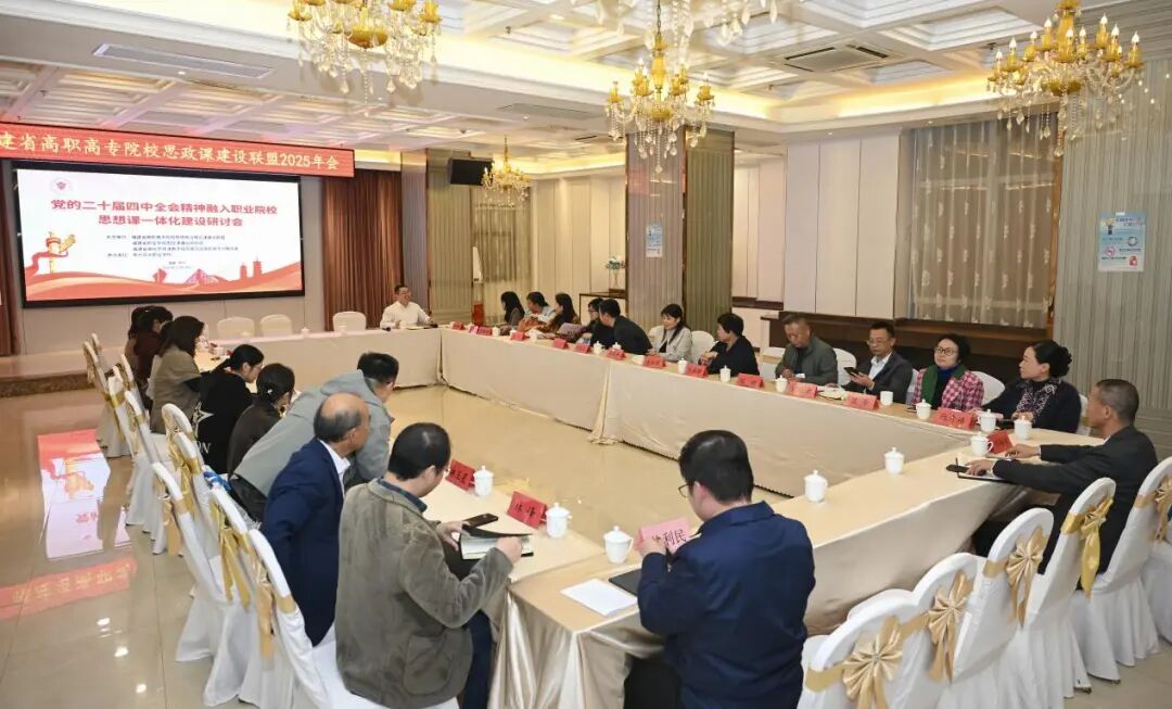 19日晚,福建省高职高专院校思政课建设联盟理事会会议、福建省职业学校思政课建设协作组会议以及“党的二十届四中全会精神融入职业院校思政课一体化建设”专题研讨会在泉州湖美酒店举行。来自联盟理事单位、省内各高职高专院校的代表以及马克思主义学院负责人齐聚一堂,围绕会议议题进行了热烈而富有建设性的交流与分享。