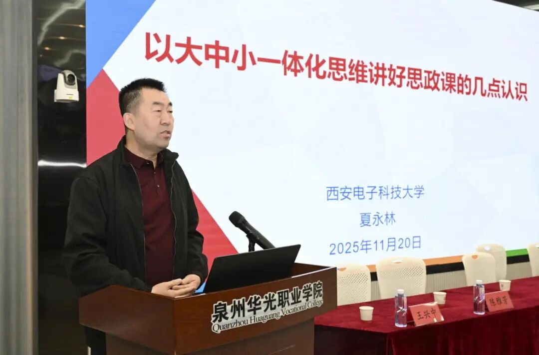 2025年11月19日至21日,福建省高职高专院校思想政治理论课建设联盟2025年会暨福建省职业学校思想政治理论课建设协作会议在泉州华光职业学院成功举办。本次会议以“深入学习贯彻党的二十届四中全会精神,扎实推进思政课内涵式发展”为主题,围绕工作报告、专家主旨报告、骨干教师教学展示及实践教学等多个环节展开深入交流与研讨,来自全省50余所职业院校的党委书记、校长、马克思主义学院院长及思政骨干教师代表等100余人出席会议。我校党委副书记林新钊、马克思学院副院长陈丽萍参会。