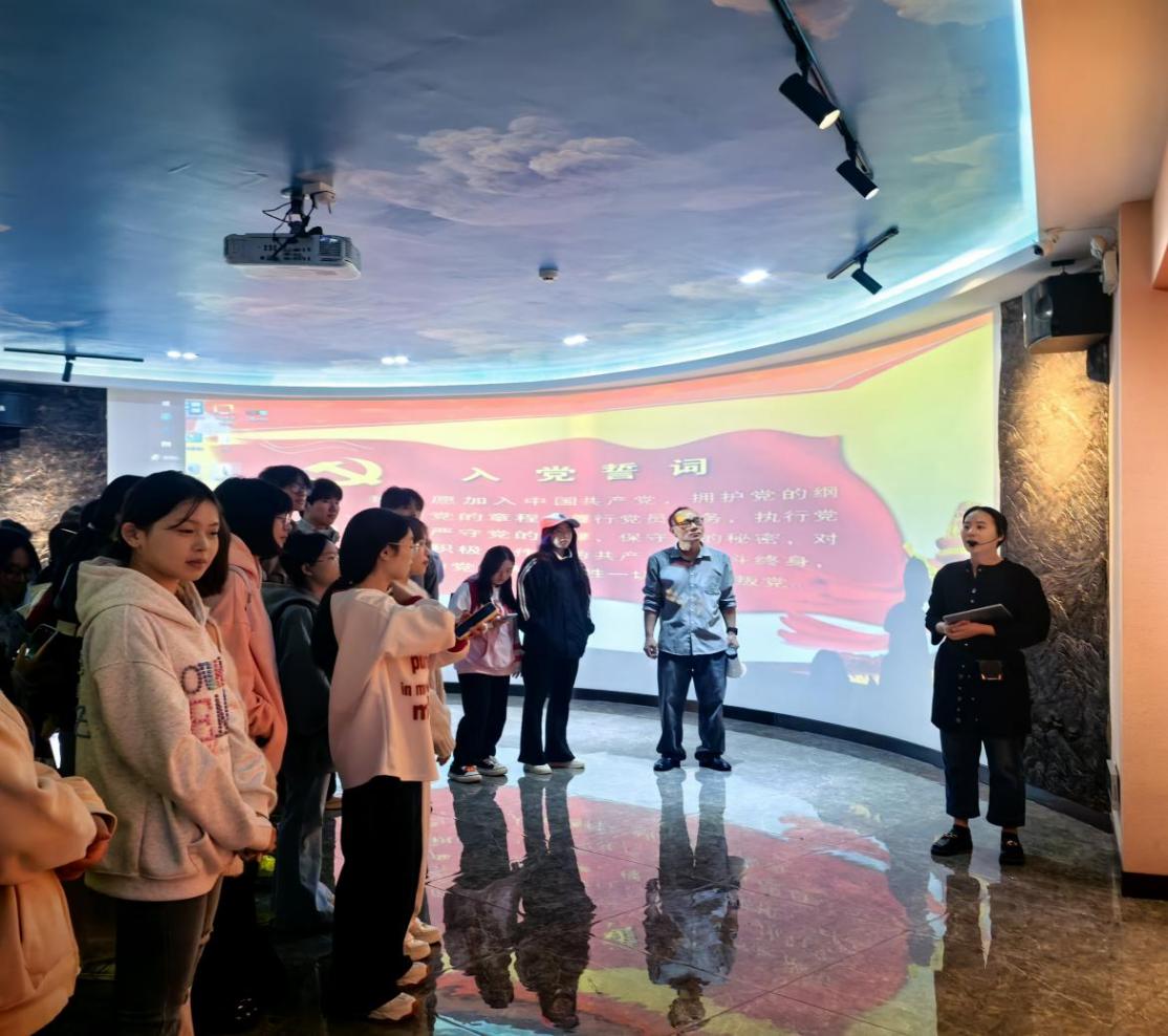 在原鲁山同志先进事迹主题展厅,师生通过聆听讲解、观看影像与实物展示,深入了解了原鲁山同志带领干部群众建设东圳水库的感人历程。仿真办公室内陈列的简陋办公设备、一辆旧自行车,都让同学们真切感受到原鲁山同志“老老实实做人,踏踏实实干事,清清白白为官,永葆共产党人本色”的崇高风范。