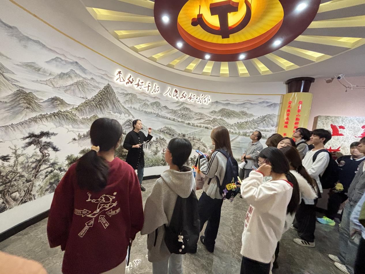 在原鲁山同志先进事迹主题展厅,师生通过聆听讲解、观看影像与实物展示,深入了解了原鲁山同志带领干部群众建设东圳水库的感人历程。仿真办公室内陈列的简陋办公设备、一辆旧自行车,都让同学们真切感受到原鲁山同志“老老实实做人,踏踏实实干事,清清白白为官,永葆共产党人本色”的崇高风范。