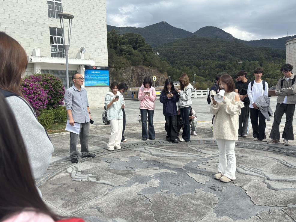 在思源亭旁,丘静雯同学为大家讲述了东圳水库建设中的感人故事与先进事迹。现场还设置了知识抢答环节,同学们踊跃参与,进一步加深了对莆田治水历史与东圳水库兴建历程的理解。