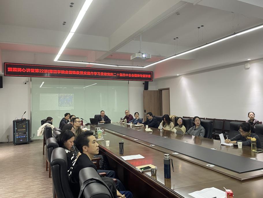 为深入学习贯彻党的二十届四中全会精神,切实把思想和行动统一到党中央决策部署上来,11月18日下午,我院在行政楼中303会议室举办专题讲座,特邀莆田学院马克思主义学院院长俞国锋教授担任主讲。马克思主义学院全体教师参加学习。