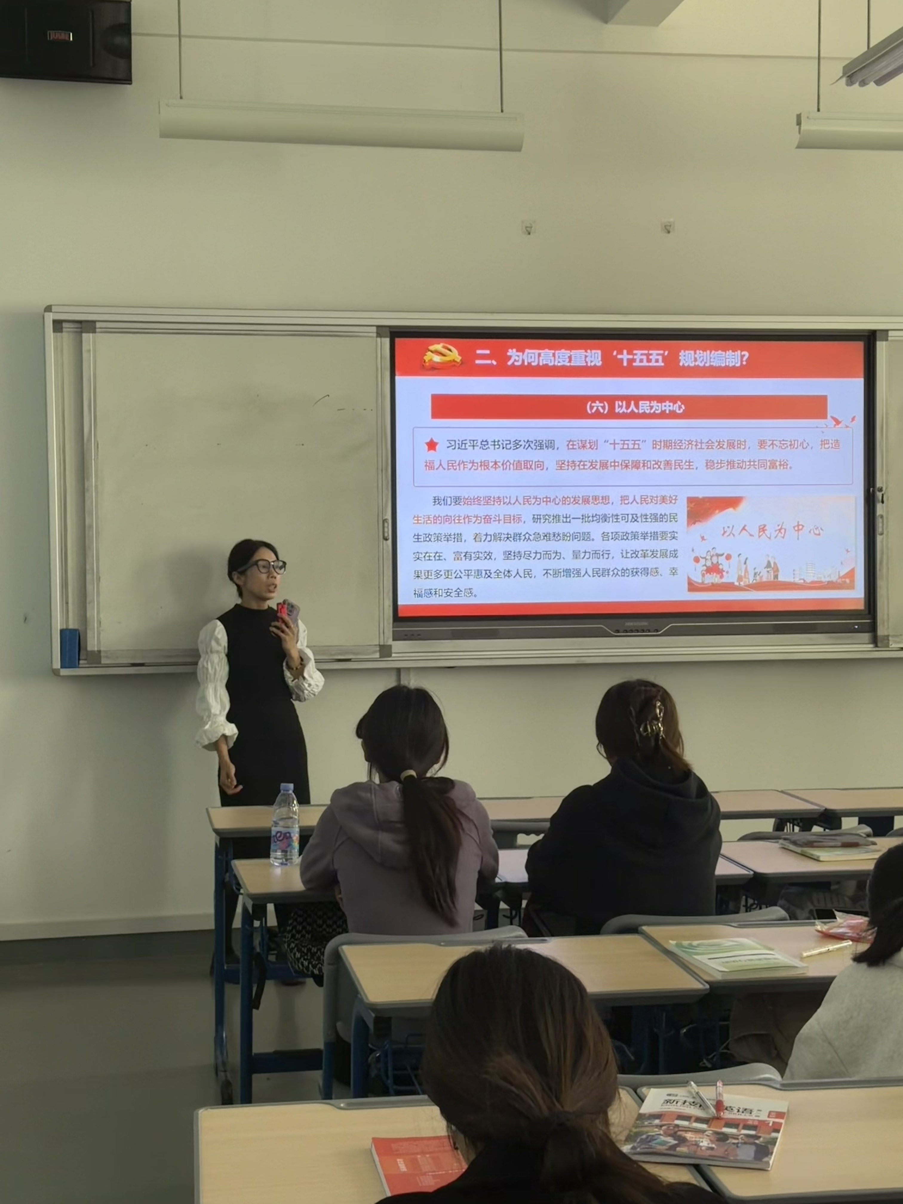 朱正婧老师首先为同学们厘清了党的中央全会,特别是四中全会在党和国家政治生活中的关键坐标意义。她回顾了历史上几次具有里程碑意义的四中全会,生动阐释了这些会议如何在不同历史阶段为国家发展定调指路。随后,她重点聚焦于2025年10月胜利召开的党的二十届四中全会,指出其特殊历史方位在于承前启后——既总结评估“十四五”规划成效,更全面布局“十五五”发展,是为到2035年基本实现社会主义现代化目标夯实基础的关键会议。