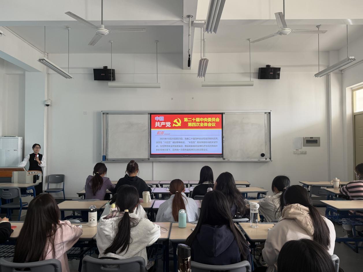 2025年11月27日上午,一场别开生面的理论学习讲座在公教一南303教室举行。马克思主义学院朱正婧老师为婴幼儿托育服务与管理专业2501班的同学们,带来了一场题为“领会党的二十届四中全会精神,用青春担当守护未来”的专题宣讲。讲座旨在引导学生深刻理解国家发展大计,将个人职业规划融入时代洪流。