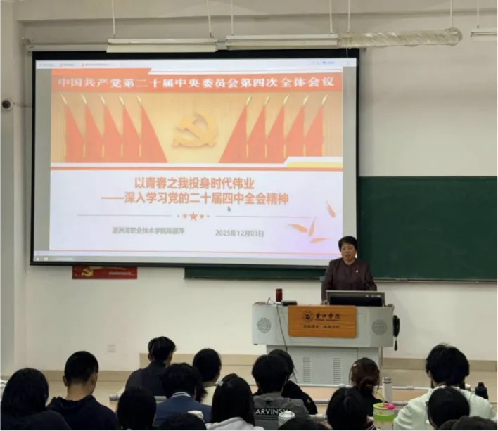 12月3日下午,莆田学院马克思主义学院“毛泽东思想和中国特色社会主义理论体系概论”课堂特邀我校马克思主义学院党支部书记、副院长陈丽萍教授,为会计241、242班学生带来了一场题为《以青春之我投身时代伟业——深入学习党的二十届四中全会精神》的精彩讲座。讲座紧扣时代脉搏,深入阐释全会精神,旨在引导青年学子把握时代方位,明确责任使命。除有教学任务的教师外,教研部其他教师均须参加本次讲座。