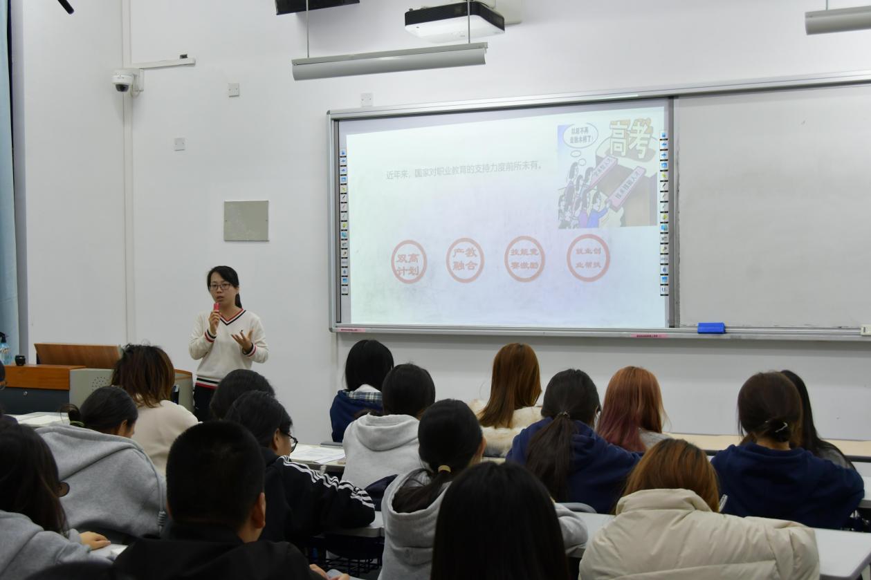 讲座中,张老师结合当前职业教育现状及问题,主要围绕领袖嘱托、政策赋能、榜样引领与实践路径四个方面展开,破解同学们关于职业教育的系列困惑。