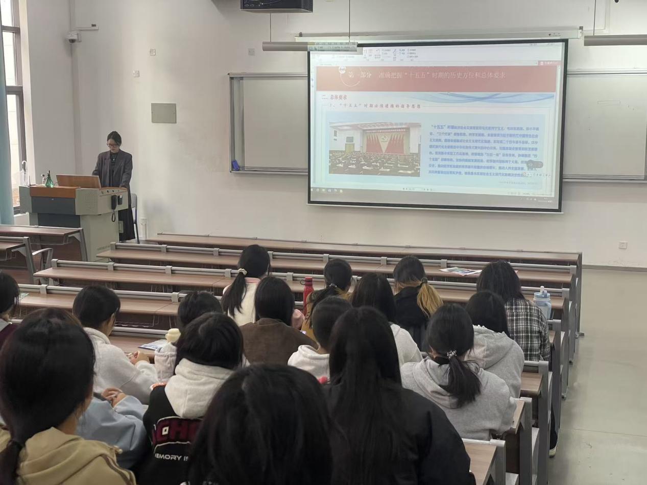 吴莉婷老师首先带领学生解读党的二十届四中全会的核心要义和重要地位,在此基础上吴老师重点阐释了《中共中央关于制定国民经济和社会发展第十五个五年规划的建议》,并强调该建议对“十五五”时期我国经济社会发展作出战略部署,为接续推进中国式现代化建设指明了前进方向。