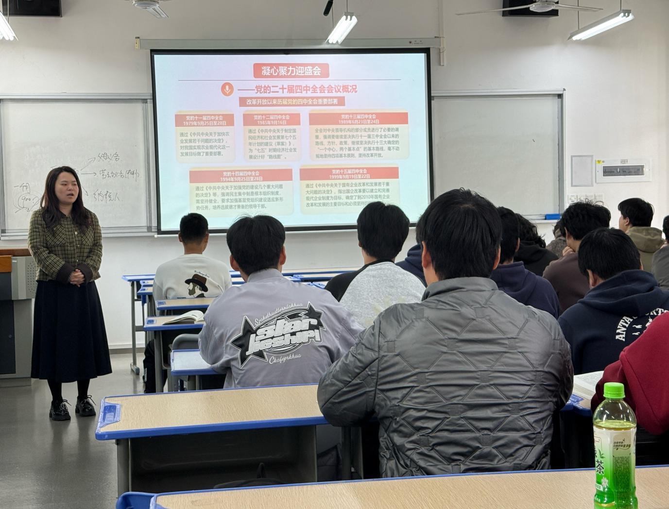 据悉,我校始终坚持“思政育人与专业育人同向同行”,思政教师精准挖掘课程思政结合点,形成了“政策解读+专业对接+实践指引”的定制化宣讲方案,让理论宣讲既“有高度”更“接地气”。下一步,学校将持续推进党的二十届四中全会精神进教材、进课堂、进头脑,通过“思政+专业”“理论+实践”的多元形式,引导青年学子坚定理想信念、练就过硬本领,为中国式现代化建设贡献青春力量。